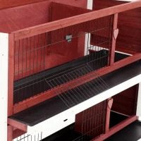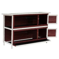This 2-in-1 rabbit hutch from PawHut includes a treated wood finish for a stable structure that compliments your backyard décor. Open and close the guinea pig hutch to make things simple for you with multiple side doors. Easily clean the hutch with the two pull-out trays for easy access to the inside space for cleaning, feeding, and more. Keep your bunnies warm and dry with this bunny cage that utilizes an asphalt roof that keeps them dry on rainy days and shaded from the sun. Features: - 2 in 1 cage creates a unique rabbit hutch - 2 easy-access doors for each bunny cage, four doors total - Bunny hutch includes removable floor trays for easy cleaning, feeding, and more - Separate the rooms rabbit cage to separate rooms - Includes an asphalt shingle roof to keep your rabbits out of the rain and sun - Assembly Required Specification: - Color: Orange - Material: Fir Wood, Metal Wire - Overall Dimensions: 53.75" L x 19.75" W x 36.5" H - Inner Cages: 14.25" L x 16.5" W x 14.25" H - Wire Doors: 15.75" L x 8.75" H - Wood Doors: 12.5" L x 11.25" H - Leg Height: 4" - Bottom Tray: 48" L x 16.5" H - Assembly Required Package Includes: - 1 x Rabbit Hutch - 1 x Manual This 2-in-1 dual rabbit playpen hutch from PawHut includes a treated wood finish that is both stable and aesthetically pleasing. Designed with your pet in mind, one side of the enclosed hutch is designed for privacy and rest while the other offers a more open style built for play. This rabbit starter kit allows you to separate and house your furry friends on different levels. This rabbit playpen makes things simple for you with multiple side doors that can be opened and closed and 2 pull out trays for easy access to the inside space for cleaning, feeding, and other routine tasks. Made with durable fir wood and a water resistant composite asphalt roof, this outdoor rabbit cage will keep your furry friends dry for years to come. This hutch provides adequate space for your furry friend while also being compact enough to easily fit in the corner of a room or the backyard. Features: - 2-tier design rabbit hutch, ideal for rabbits, bunnies, and other small animals - Crafted from solid fir wood and steel wires for superior strength and durability - Multiple door design and open roof provide easy access - Top hinged roof is covered with asphalt for enhanced weather protection - 2 easy slide-out trays included for cleaning - Elevated design to protect your bunny and the house Specification: - Color: Brown and White - Material: Fir Wood, Steel Wire - Overall Dimensions: 53.75" L x 19.75" W x 36.75" H - Each Tier Size: 48" L x 14.25" W x 17" H - Wood Door Size: 11" W x 12.5" H - Wired Door Size: 15"W x 6.25"H - Net Weight: 35.5 lbs - Assembly Required - 1 x Rabbit Hutch - 1 x Manual.