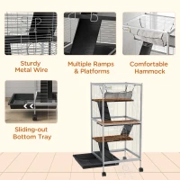 PawHut Rolling Small Animal Cage With Hammock, Ferret Cage, Chinchilla Cage, Pet Habitat With 6 Doors, Removable Tray