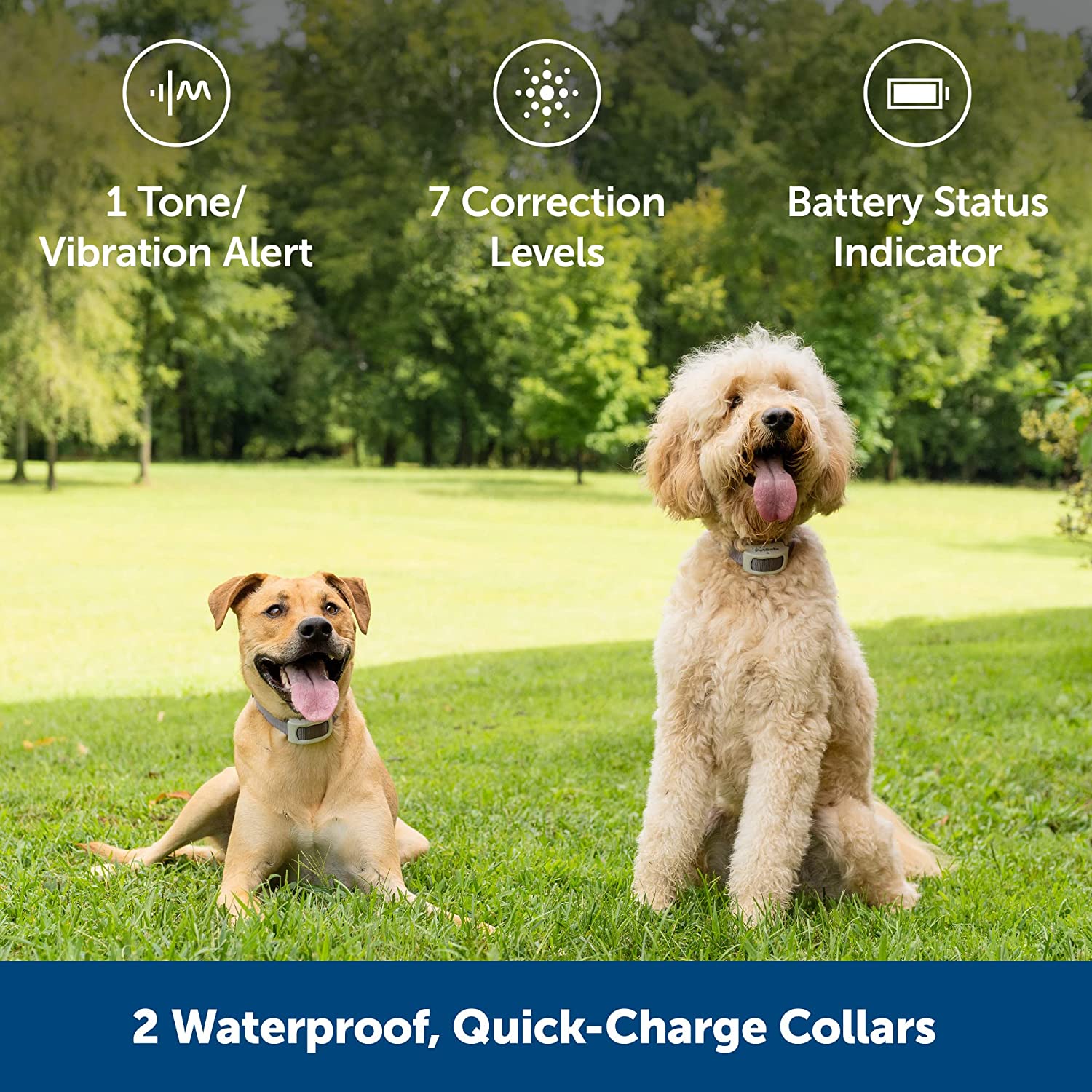 This kit comes with 500 feet of boundary wire which lets you secure a 1/3-acre yard. If your yard is larger, just purchase more boundary wire to fence in up to a 5-acre yard. The rechargeable receiver collar has 7 levels of adjustable static correction that you can set based on your dogs temperament. The collar also has a level that is tone and vibration which is great for when you're training your dog. The receiver collar is also compatible with all PetSafe Pawz Away Pet Barriers (sold separately) so you can keep your dog safe outside and away from off-limit areas inside your home with the same collar. You can add as many pets to this in-ground fence system as you need. Just purchase additional compatible collars for every pet in your family. Your pet deserves the best. Trust PetSafe to keep your pet healthy, safe and happy.