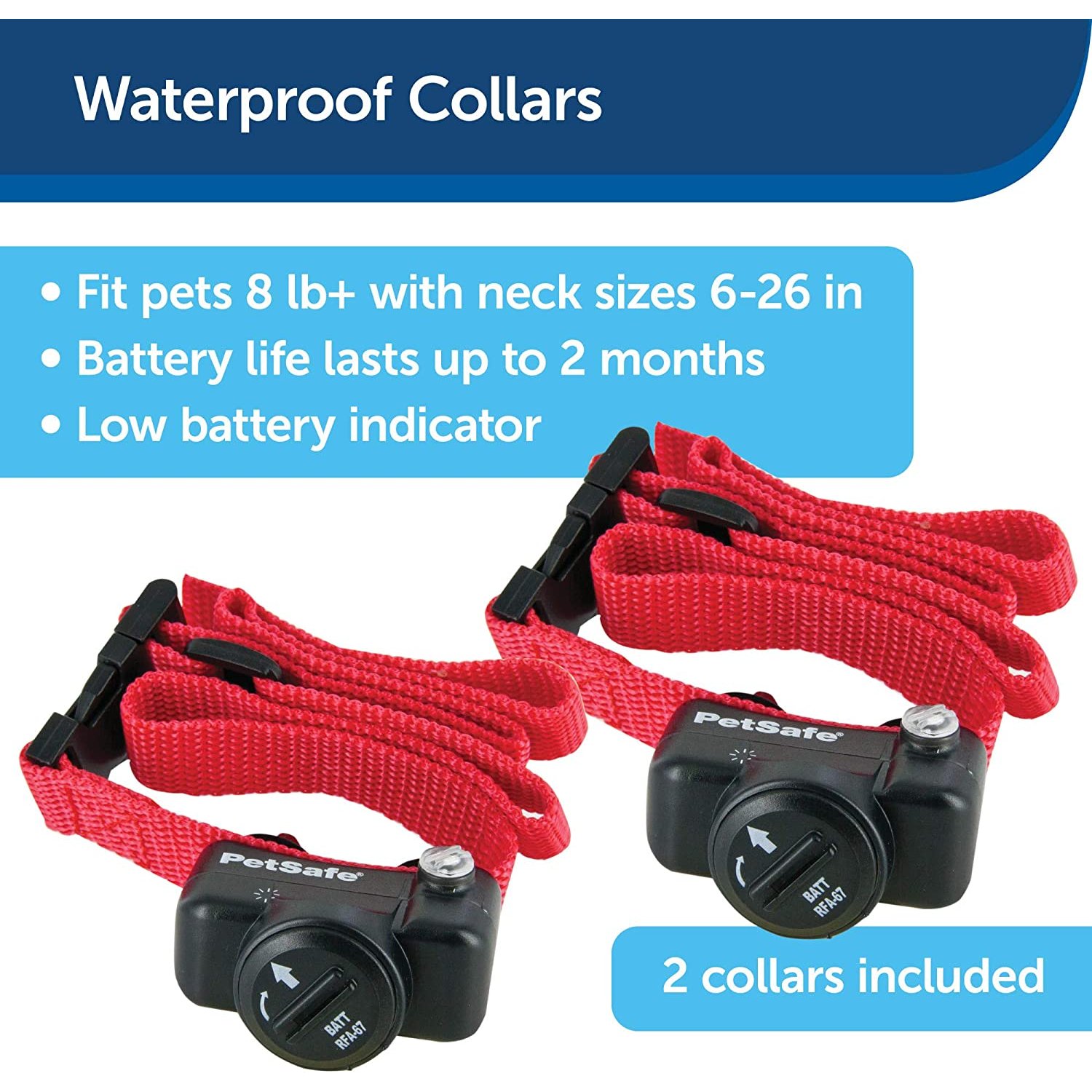 • LONG BATTERY LIFE: Each collar has a low battery indicator and up to 2 months of battery life